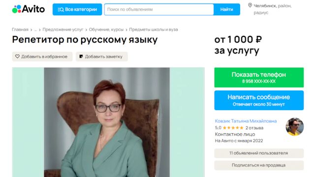 По запросу «репетитор» сервис «Авито» показывает около 1700 объявлений в Челябинске. Какие-то объявления отличаются лаконичностью, в них лишь перечислены услуги, стоимость, формат и режим занятий.
