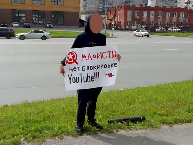В Челябинске состоялся одиночный пикет против блокировки YouTube и изоляции рунета. Его провел активист «Союза маоистов Урала».