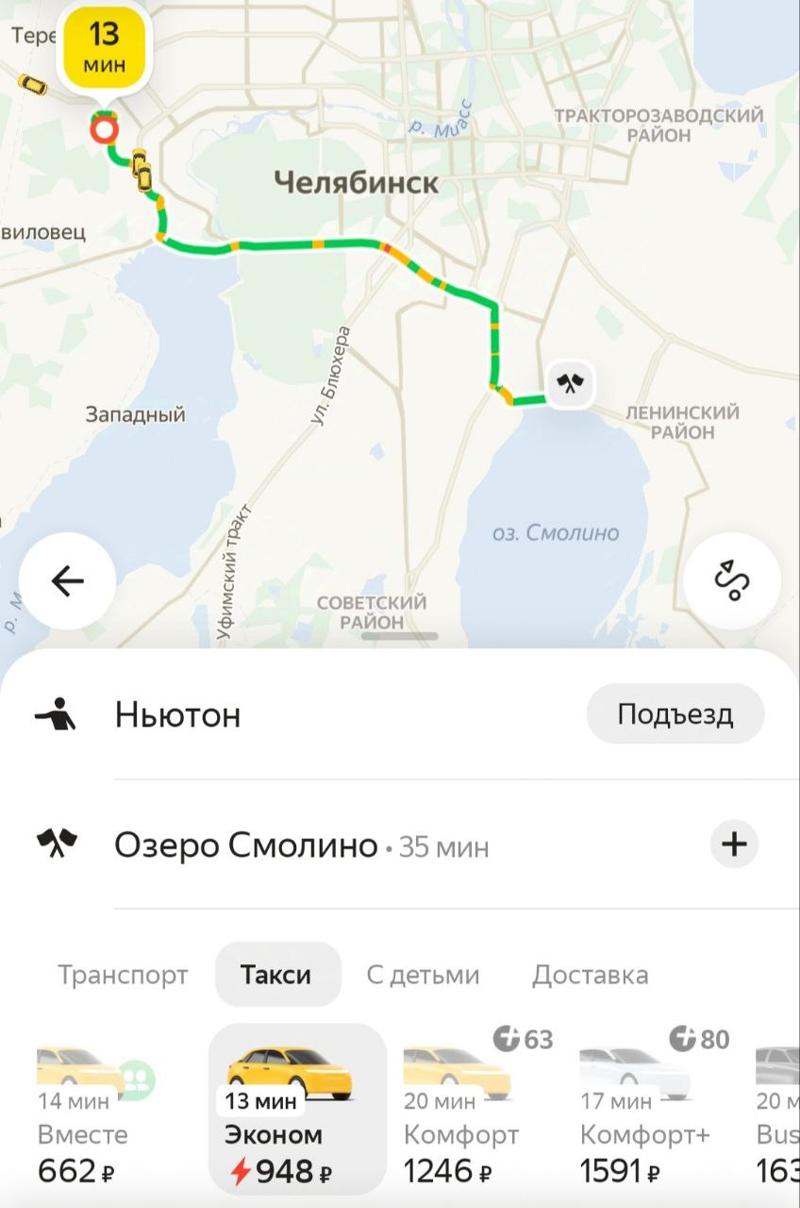 За поездку с ЧМЗ до челябинской областной больницы пассажирам придется заплатить более 900 рублей. Примерно такую же сумму нужно отдать, чтобы доехать с северо-запада города до Ленинского района. Поездка от Алого поля до железнодорожного вокзала обойдется почти в 600 рублей. В приложении указано, что заказов в разы больше, чем машин, поэтому цены выше.