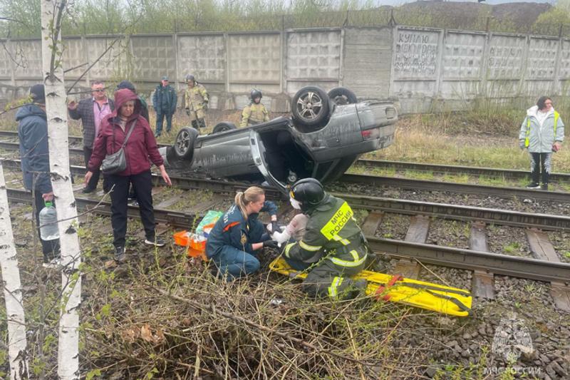 «Перевернутый автомобиль был поставлен на колеса, трамвайные пути освобождены, движение восстановлено», - сообщили в МЧС.