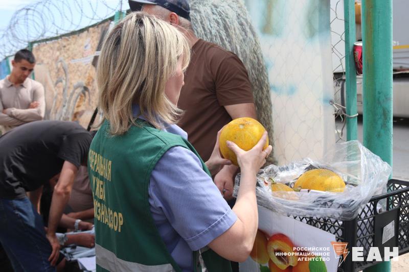 Сотрудники Россельхознадзора осматривают содержимое грузовиков на предмет наличия повреждений, гнили и вредителей. Образцы товаров отбирают для проведения лабораторных исследований. Фрукты, овощи и ягоды упаковывают в сейф-пакеты. Все действия сотрудники Россельхознадзора и таможни фиксируют на фотокамеру.