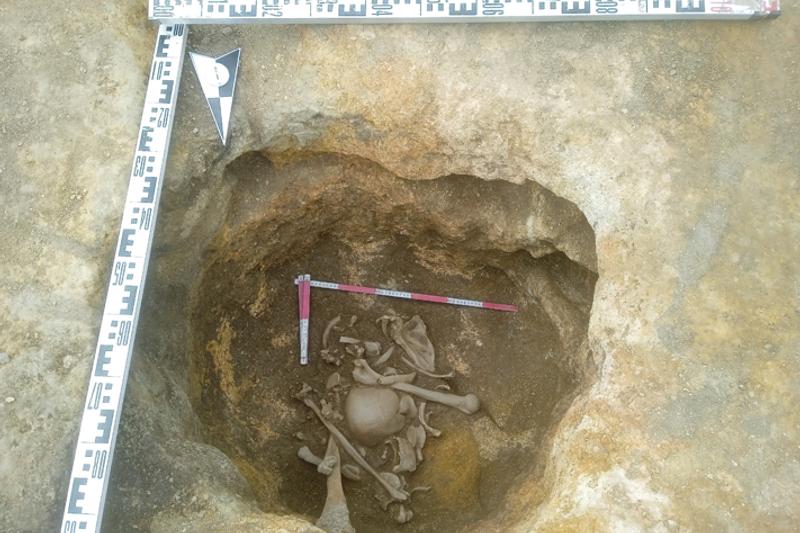 «Найденные погребения очень необычны. Первое из них — погребение взрослого, вероятно, даже пожилого человека, скорее всего — мужчины, со сильно сточенными зубами, было совершено далеко не сразу после его смерти. Кости, уже лишенные мягких тканей, были компактно уложены в небольшую, но довольно глубокую могильную яму», — рассказал Николай Петров.