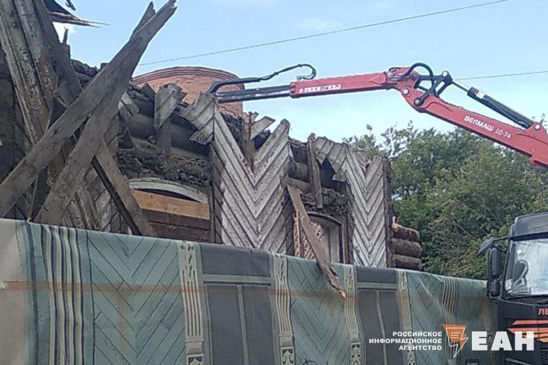 Читатели ЕАН сняли работы на видео. На кадрах видно, что часть здания пошла под снос. Также рабочие разбирают крышу особняка.