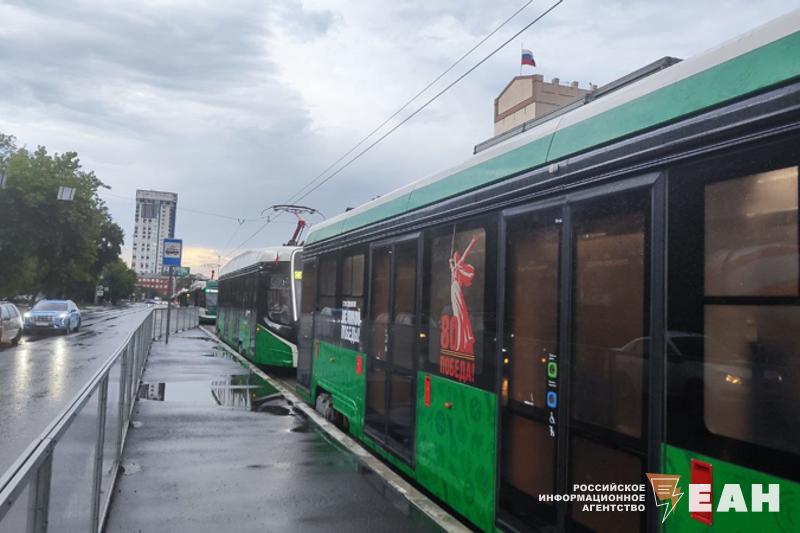 Трамваи не могут заехать в депо №1 из-за большого скопления дождевой воды. «Стрелок не видно», — сообщили в «ЧелябГЭТ».