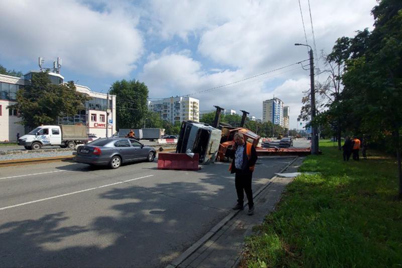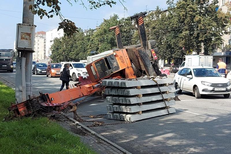 В Челябинске на участке ремонта трамвайный путей по улице Кирова упал автомобильный кран. Об этом сообщает интернет-издание «Курс дела».