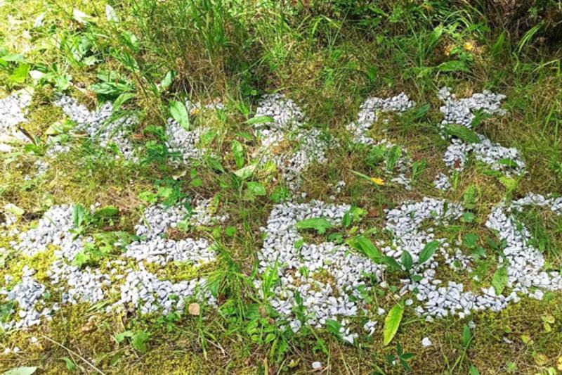 Посетители нацпарка «Таганай» (Златоуст, Челябинская область) берут щебень с тропы и сыплют его рядом на траву, рисуя им слова. Такие метки на память сотрудники парка нашли вдоль дорожки, идущей на Тещин Язык.