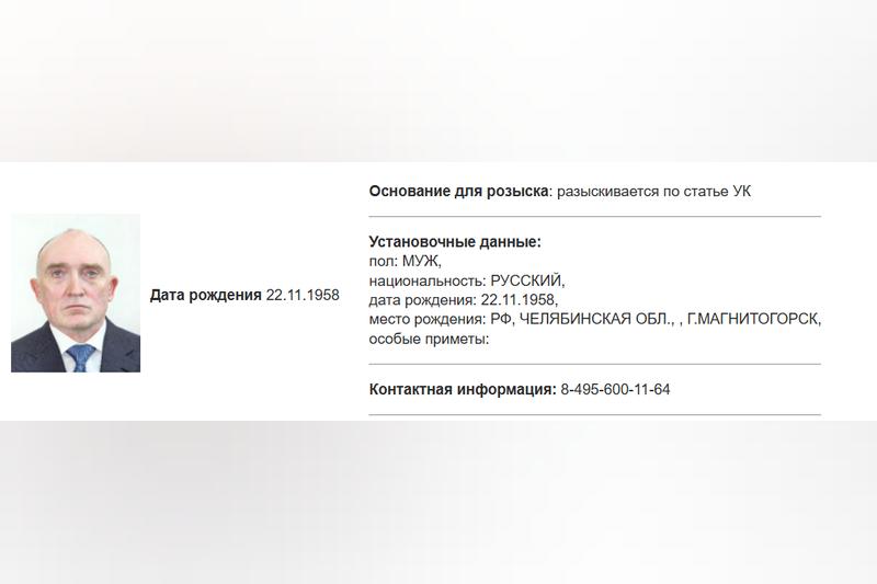 В розыск объявлен бывший губернатор Челябинской области Борис Дубровский. Информация об этом появилась в базе МВД.