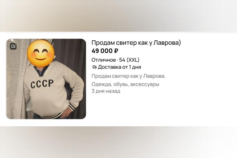 На сайтах объявлений активно продают свитеры как у Лаврова с надписью «СССР». Кто-то утверждает, что это товар челябинского бренда SelSovet, кто-то честно признается: одежда просто очень похожа на оригинальную модель, но на самом деле это no name.