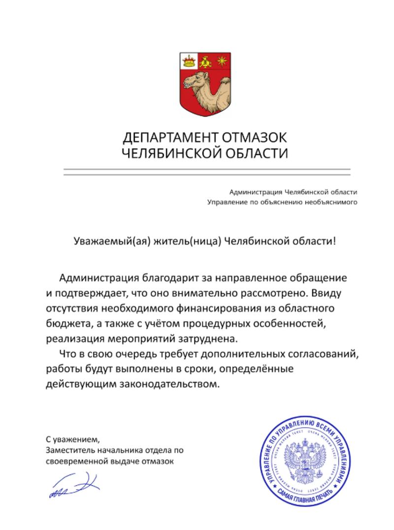 В Челябинске разработали сайт «Генератор официальных отмазок». Автором проекта стал политконсультант Евгений Маклаков. Об этом пишет «КП-Челябинск».