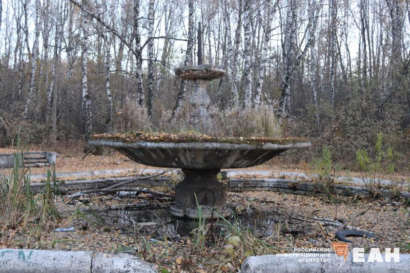 Возле заброшенного фонтана стоит сцена. Раньше здесь находилась танцплощадка. «До конца 60-х годов здесь была танцплощадка, по кругу стояли скамейки, фонари. Уже давно здесь не слышно звуков музыки. Весной школьники проводят здесь субботники, убирают мусор. Хуже это место не становится», - сообщил Алексей.