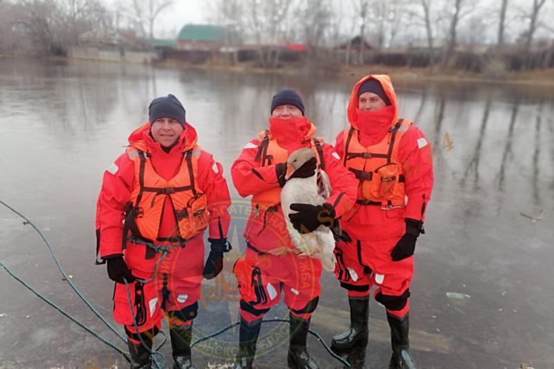 Приехавшие спасатели увидели, что рядом с вмерзшим в лед пернатым плавает домашний серый гусь (видимо, для моральной поддержки). Пока они надевали брызгозащитные костюмы, лебедь самостоятельно освободился из ледяного плена и улетел. Спасателям ничего не оставалось, как эвакуировать гуся и передать его хозяину. «И лебедя спасли, и занятие по спасению утопающего на тонком льду отработали», - прокомментировали добрую историю в службе.
