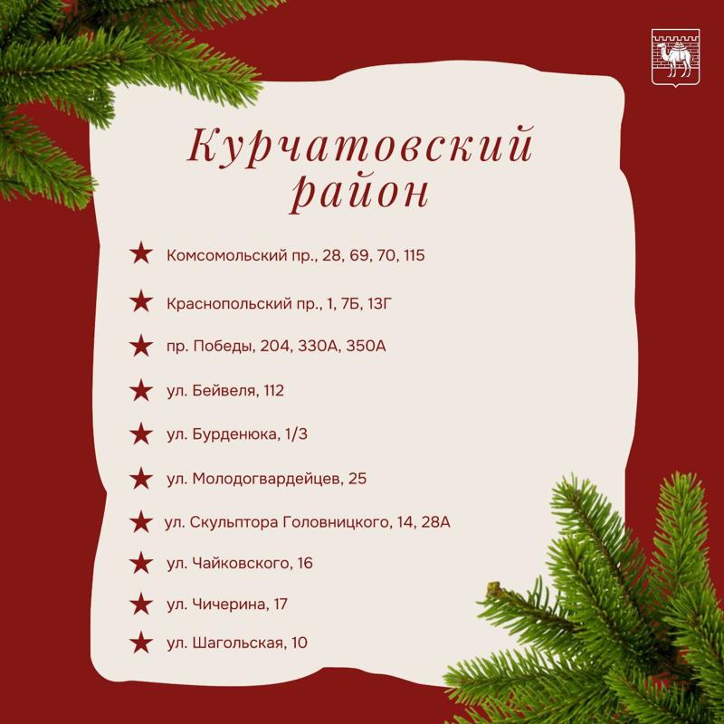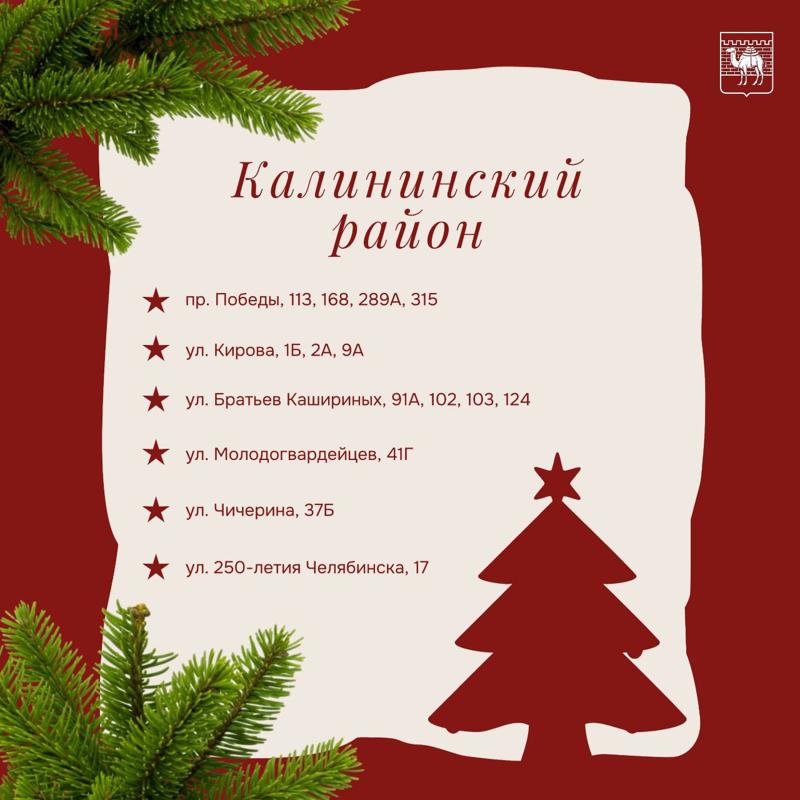 В Калининском районе по несколько базаров открылись на проспекте Победы, улицах Кирова и Братьев Кашириных, по одному – на Молодогвардейцев, Чичерина и 250-летия Челябинска. В Курчатовском больше всего пунктов торговли новогодними деревьями расположились на проспектах Победы, Комсомольском и Краснопольском. Также есть места продажи елок на Бейвеля, Чичерина, Бурденюка и других улицах.
