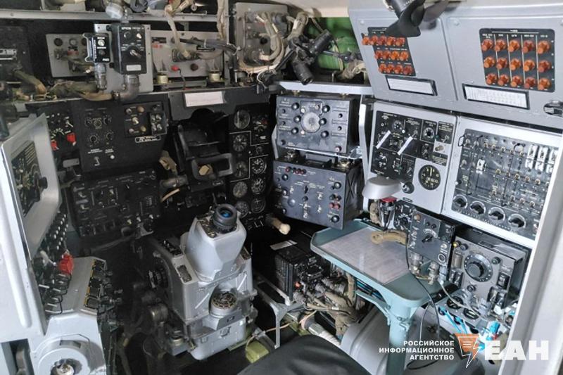 Группа двинулась к самолету Ту-134Ш, который ЧВВАКУШ использует как учебный. Внутри вместо обычных пассажирских кресел – учебные места с «партами» и авиационным оборудованием. На них курсанты получают профессиональные навыки прямо во время полетов.