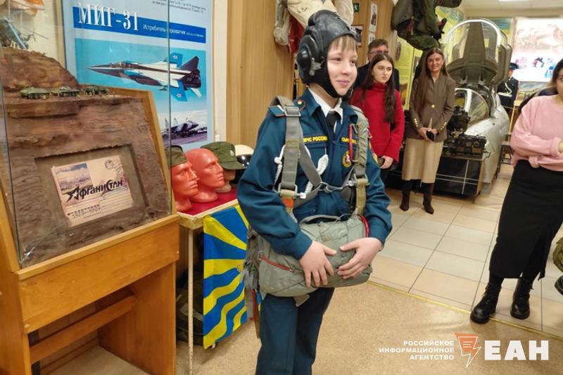 ЧВВАКУШ в этом году исполняется 90 лет. Училище бережно хранит свою историю и память о героях: на его территории есть музей, с которого и началась экскурсия. Дети увидели знамена, модели самолетов, награды, фото выпускников, трофейный украинский БПЛА и даже вытащенный из самолета оптический прицел бомбометания.