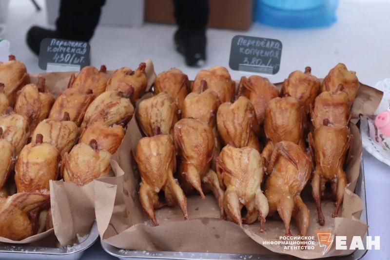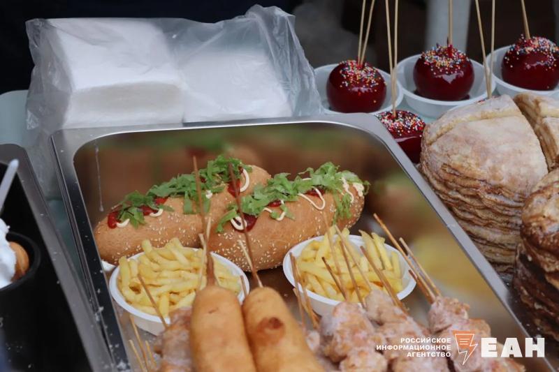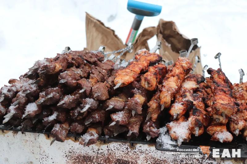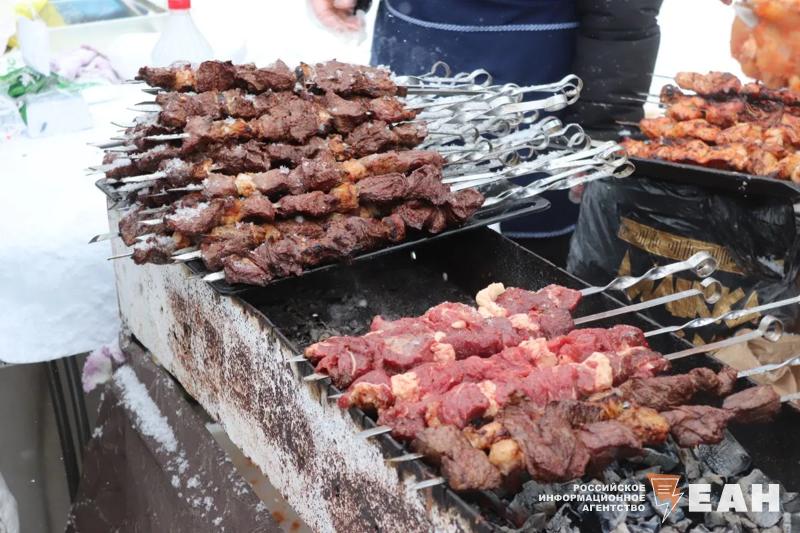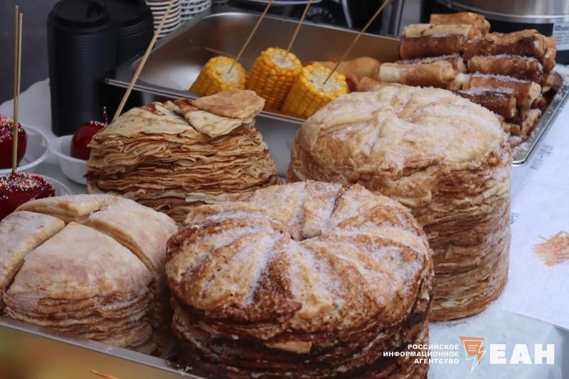 Челябинцев и гостей города не испугали ни морозная погода, ни снегопад. На центральной аллее парка работала ярмарка, на которой можно было приобрести различные угощения. Главным блюдом праздника, конечно, стали блины. Посетителям предлагали различные начинки: мясо, рыба, творог. Кроме того, гостей кормили шашлыками, перепелками, хот-догами, картошкой фри и пирожками.