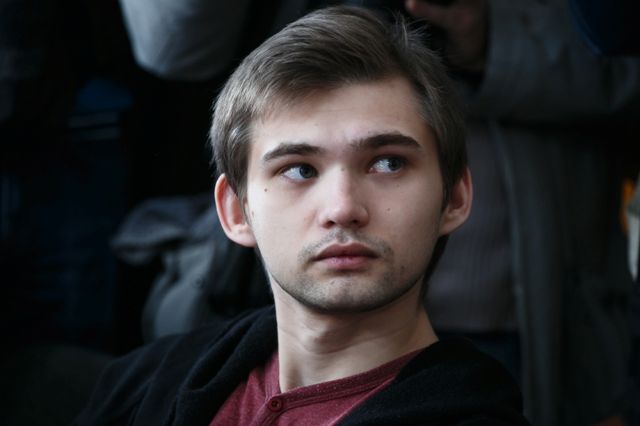 Блогер Руслан Соколовский прибыл в суд на оглашение приговора. За оскорбление чувств верующих гособвинение требует для него 3,5 года лишения свободы.