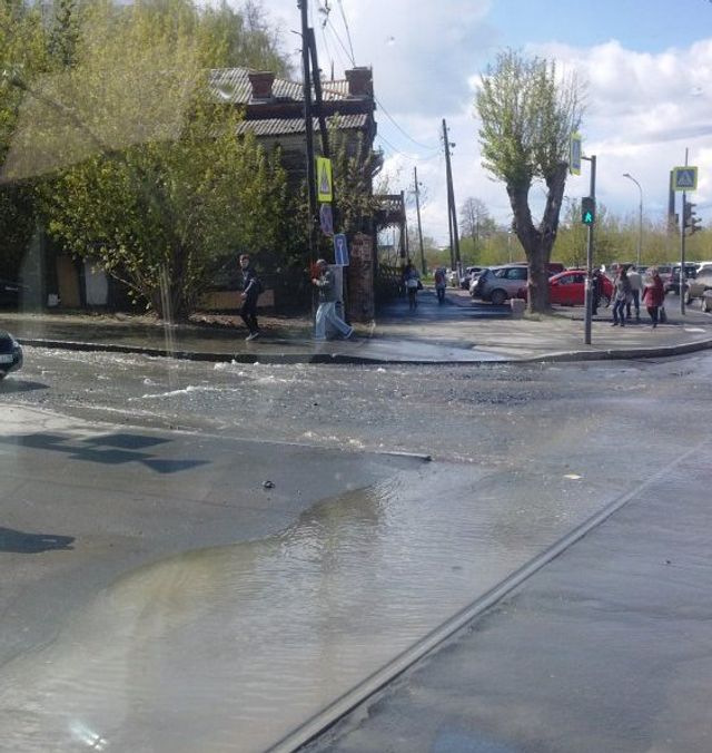 «Заливает перекресток Крылова – Кирова. При проезде будьте аккуратны, вода течет с камнями», - предупредила подписчица паблика «Инцидент Екатеринбург».