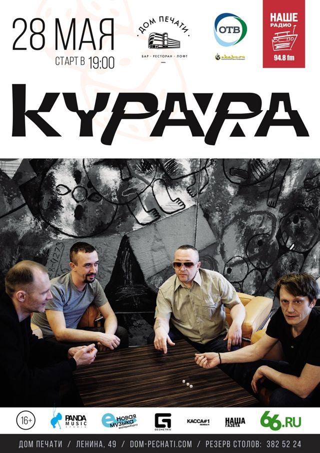Инди-рок-группа «Курара» выступит с концертом в Екатеринбурге. Музыканты во главе со своим лидером, вокалистом Олегом Ягодиным выйдут на сцену «Дома печати» 28 мая, сообщили организаторы. Одни из лидеров уральской рок-сцены сыграют свои лучшие хиты, среди которых «Екатеринбюргер», «Нас двое» и «Надо больше хорошего».