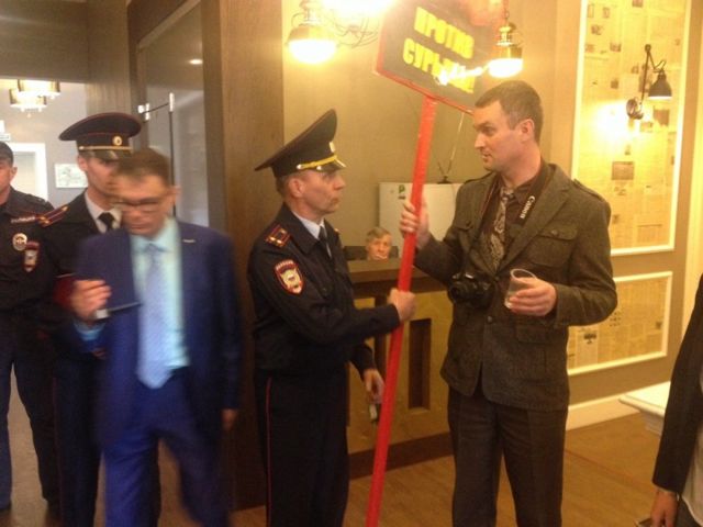 Противников проекта Ротенбергов в Свердловской области забрали в полицию прямо с пресс-завтрака с журналистами. Как заявили ЕАН прибывшие в Дом журналистов силовики, депутата гордумы Асбеста Наталью Крылову и ее соратников увезли в отдел №1.
