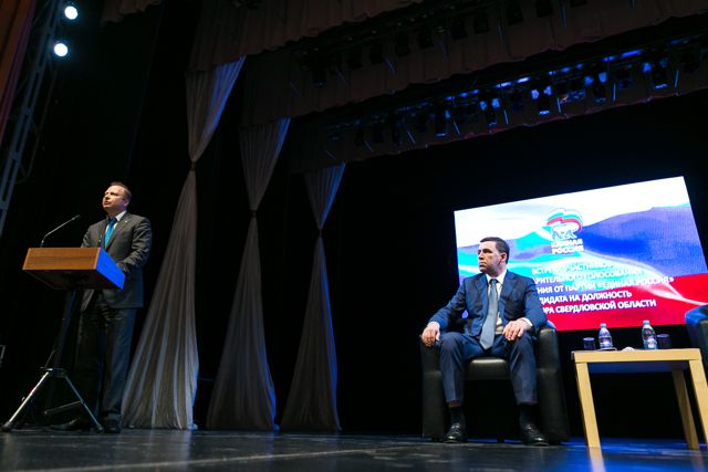 Как обычно, встреча началась с выступления Виктора Шептия, объяснившего присутствующим суть процедуры, а затем слово взял главный кандидат. Он в очередной раз презентовал партийцам краткое содержание своей предвыборной программы «Пятилетка развития», впрочем, на этот раз презентация была адаптирована к екатеринбургским реалиям. Так, Куйвашев дал оценку планам горадминистрации провести транспортную реформу.