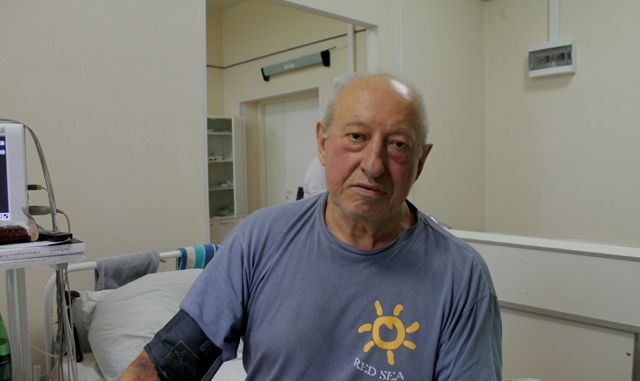 Беседа с Владиславом Вайманом проходила в его палате в присутствии Владимира Кухаркина, завотделением и еще 2 сотрудников больницы. Казалось, что 72-летнему пациенту говорить было трудновато, однако он был словоохотлив. Он приподнялся и практически без чужой помощи сел на кровати.