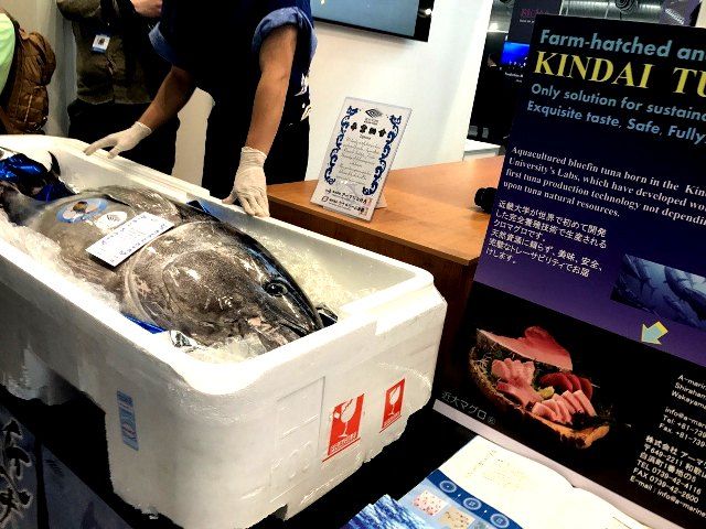 Посетители выставки «Иннопром» буквально разорвали гигантского японского тунца. На стенде, где состоялась дегустация, собралась целая толпа — каждый хотел попробовать необычную рыбу весом почти в центнер. Тунец был доставлен самолетом из Японии, рыбу подавали сырой, с японским соевым соусом.