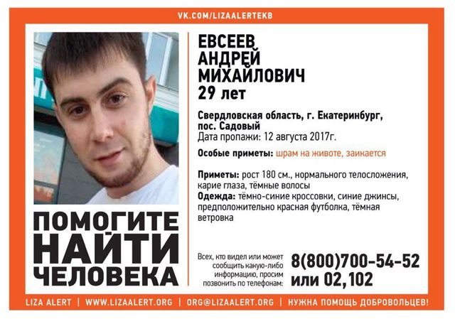 Если кто-то видел Андрея или знает о его местонахождении, просьба звонить по телефону 8-900-213-13-18 (Кристина Олеговна).