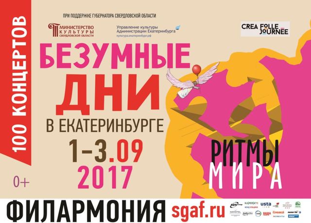 На 8 концертных площадках будут звучать ритмы мира - 100 концертов объединят творческие коллективы и исполнителей из Франции, Великобритании, Японии, Кореи, Испании, Польши и России. Организатор фестиваля в России – Свердловская филармония.