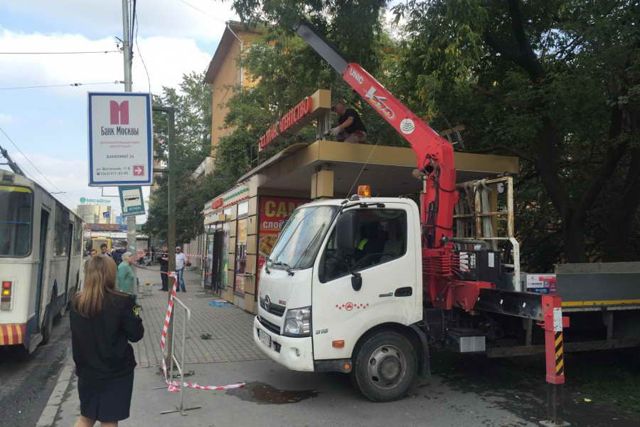 Арбитражный суд региона удовлетворил требования МУГИСО и администрации Екатеринбурга об освобождении земельного участка от павильона «Продукты». Собственник объекта должен был в десятидневный срок добровольно освободить территорию, но не сделал этого. Поэтому теперь администрация Октябрьского района совместно с отделом Федеральной службы судебных приставов производит снос торгового объекта.