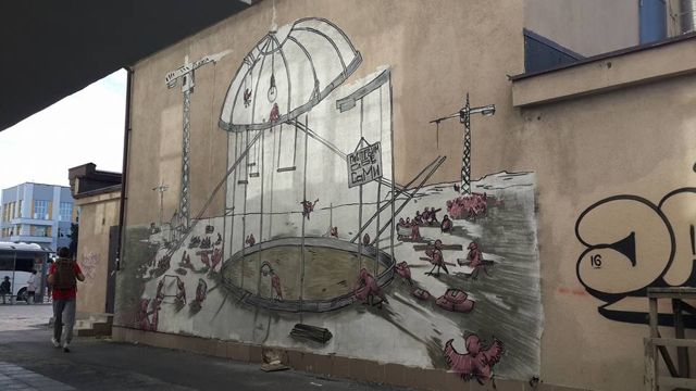 Неизвестный автор нарисовал на стене городского кафе вблизи Главпочтамта в Екатеринбурге необычную композицию. На граффити птицы сами себе строят клетку. Екатеринбуржцы активно постят фотографии арт-объекта под названием «Построим себе сами» в соцсети.