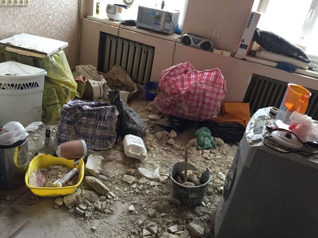 «Горячая вода хлестала с потолка и из розеток минут 15. Потом начала сыпаться штукатурка. Она обвалилась почти вся. Сейчас мы живем под деревянными перекрытиями, которые, мне кажется, не сегодня-завтра обвалятся», - рассказала хозяйка пострадавшей квартиры Александра Грачева.