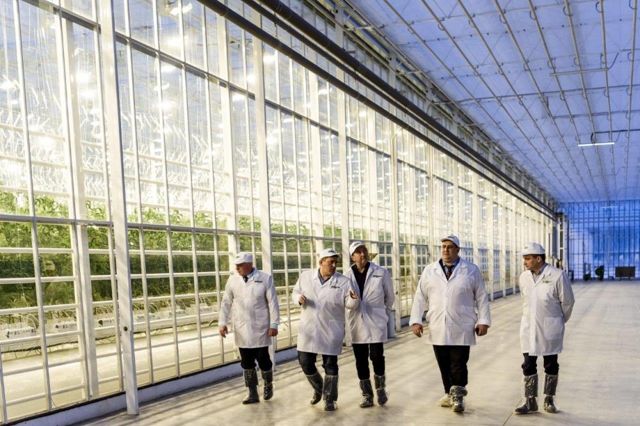 На инновационном тепличном комбинате АО «Тепличное» (входит в «УГМК-Агро») гости попробовали свежие огурцы. Комплекс впервые позволил овощеводам Свердловской области собирать свежий урожай круглый год. Это обеспечила система дополнительного освещения, которая в зимний период используется по 18-20 часов в сутки. А также технология Ultra Clima, позволяющая в любое время года поддерживать в теплицах идеальный микроклимат со среднесуточной температурой +22 градусов. Работу систем обеспечивает уникальный для России энергоцентр, который вырабатывает сразу четыре вида энергии: электрическую, тепловую, углекислый газ (СО2) и даже холод.
