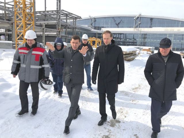 Свердловский губернатор Евгений Куйвашев и глава федерального минпромторга Денис Мантуров сегодня осмотрели стройку конгресс-холла выставочного центра «Екатеринбург-экспо». Это произошло в первой половине дня, пока чиновники ждали прилета в Екатеринбург президента Владимира Путина.