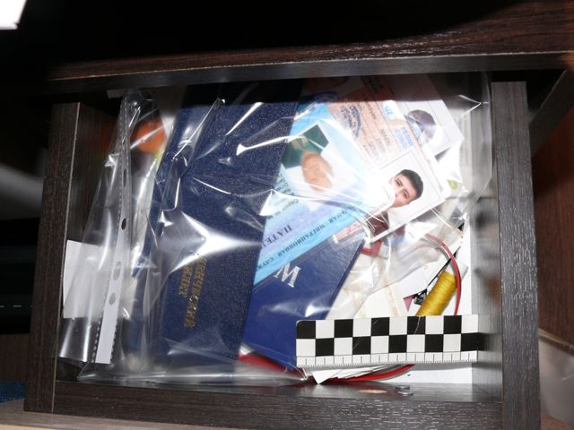 В результате обысков по местам жительства и работы подозреваемых выявлена лаборатория по изготовлению поддельных документов. Сотрудниками изъяты: поддельные дата-штампы, печати органов ЗАГС и учебных учреждений Таджикистана, 50 поддельных патентов на работу, более 500 пустых бланков миграционных карт, ламинаторы, материалы для изготовления голограмм.