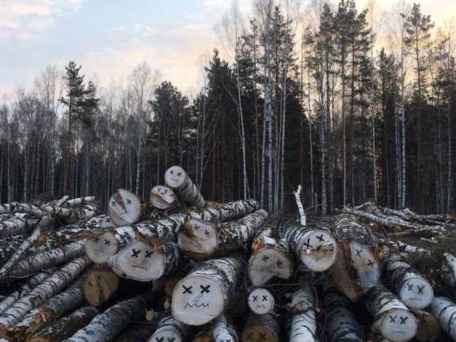 Неравнодушные горожане нарисовали грустные смайлики на березах, которые массово вырубили ради стройки в екатеринбургском микрорайоне Академическом, сообщают очевидцы.