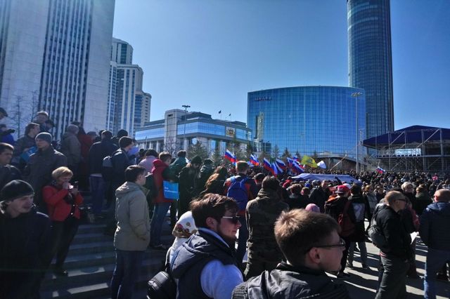 В Екатеринбурге началось несанкционированное шествие сторонников Навального. Около 500 человек собралось на Октябрьской площади. На подступах к площади стоит несколько грузовиков Росгвардии, дежурит полиция, установлены рамки для входа.