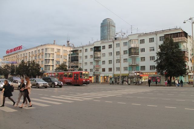 В Екатеринбурге возобновлено движение по перекрестку проспекта Ленина с улицей Карла Либкнехта, которое закрывалось из-за ремонта трамвайных путей.