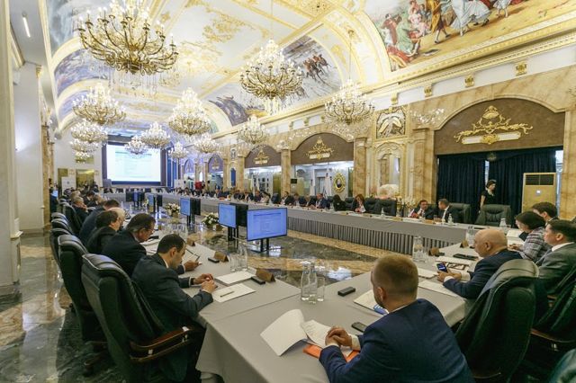 Перед заседанием бизнесмен Андрей Симановский на правах хозяина провел экскурсию для губернатора по своим владениям: СОСПП на этой площадке собирался впервые, достоверно неизвестно и то, бывал ли здесь раньше глава региона. На входе в роскошный зал с золотой лепниной и портретами российских императоров высоких гостей встречали девушки в вечерних платьях. Сотрудники в офисе смущенно продолжали работать, делая вид, что не обращают внимание на статусных гостей.