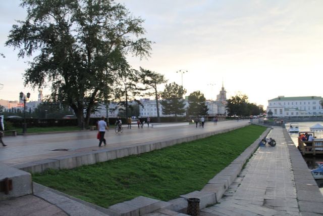 В Екатеринбурге заново закрашивают участки гранитной набережной Городского пруда, чтобы замаскировать там граффити.