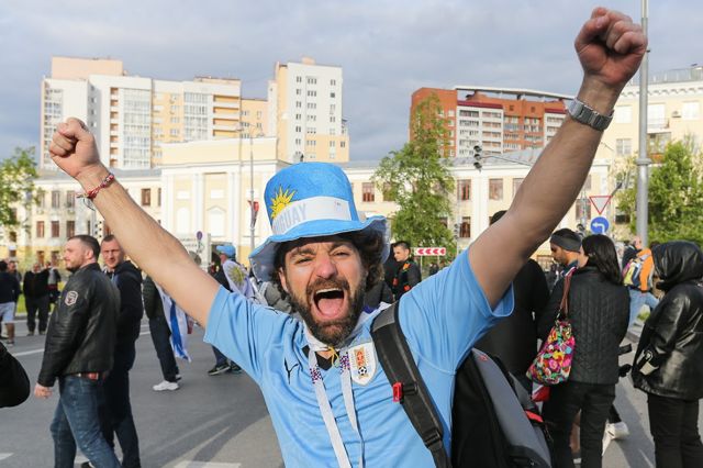 Екатеринбург провел первый матч Чемпионата мира по футболу 2018. Вдохновленные победой своей команды, болельщики сборной Уругвая заполонили улицы уральской столицы.