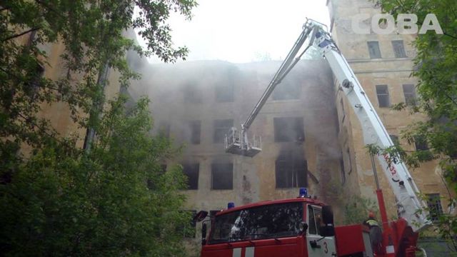 В Екатеринбурге утром 16 июня горело здание заброшенной больницы скорой медицинской помощи в Зеленой роще, сообщает служба спасения «Сова».