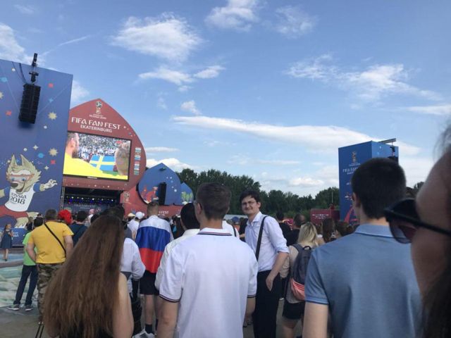 Фан-зона в екатеринбургском Центральном парке культуры и отдыха вечером 27 июня оказалась почти заполнена, передает корреспондент ЕАН.
