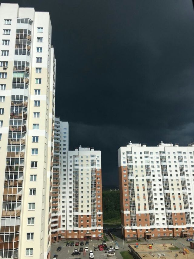 В Екатеринбурге с минуты на минуту начнется мощная гроза. Черные тучи идут на уральскую столицу со стороны Краснолесья.