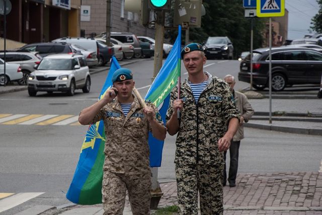 После официальной церемонии начался концерт. Место праздника было оцеплено полицией, на площади работала кухня, но был запрещен алкоголь. Возможно, поэтому некоторые «голубые береты» не спешили идти к сцене, а разместились за периметром оцепления. Так, стол с выпивкой и закуской одна компания предприимчивых десантников накрыла в открытом багажнике внедорожника.
