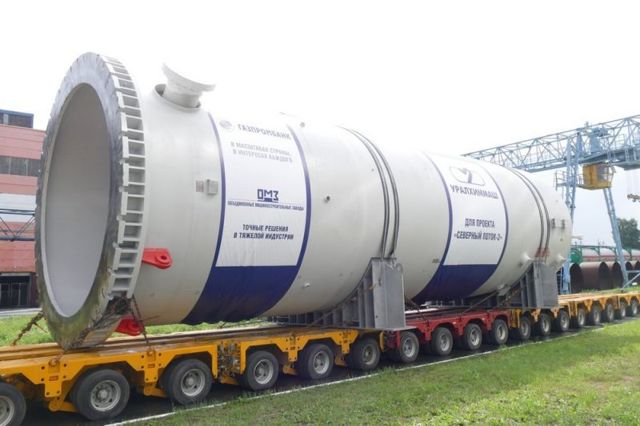 Напомним, адсорберы – сложные аппараты для очистки газа. Они были изготовлены на заводе «Уралхиммаш» для КС «Славянская» (Кингисеппский район Ленинградской области). Высота цистерн составляет 19,1 м и диаметр – почти 6 м.
