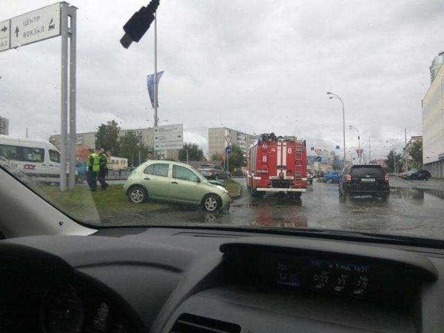 О пострадавших информации пока нет. На место прибыли пожарный, помощь которых, по всей видимости потребовалась, чтобы эвакуировать людей, зажатых в салоне.