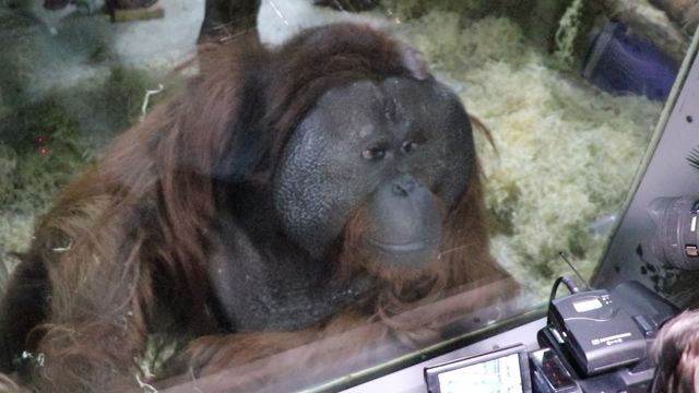 В честь 88-летия зоопарка Екатеринбурга научные сотрудники сегодня представили посетителям нового питомца, 160-килограммового орангутана Захара. Ему 18 лет, он очень любит людей, но сегодня был смущен фонарями на видеокамерах и стеснительно кутался в плед.