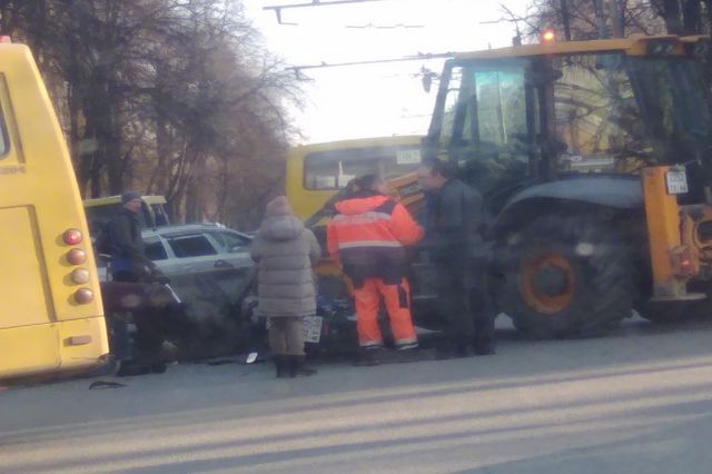 Около 11:00 в Екатеринбурге на перекрестке улиц Мира и Первомайской мотоциклист врезался в экскаватор. Судя по видео и фото с места событий, байк буквально влетел под спецмашину. Очевидцы сообщают, что мотоциклист был без шлема, но находится в сознании. В ГИБДД эту информацию пока не подтвердили.