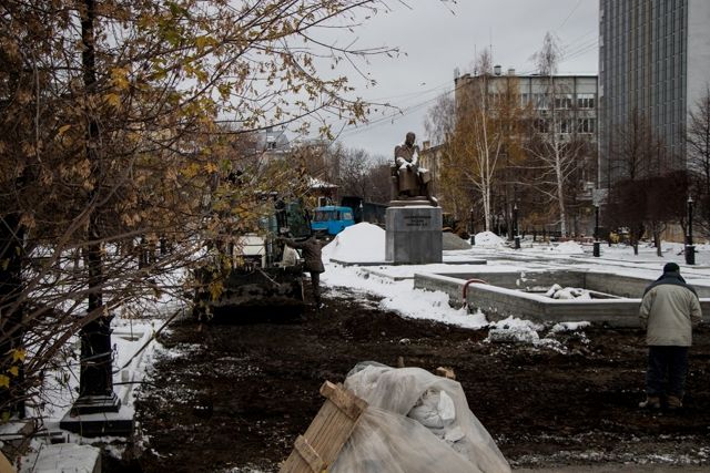 Напомним, сквер Попова должен быть сдан в эксплуатацию до конца года, то есть все работы, в том числе отделочные, будут вестись при отрицательных температурах и в снег.
