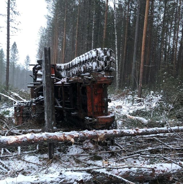 При буксировании бревен трактор начал крениться. Водитель попытался выпрыгнуть из кабины, но был придавлен транспортным средством и скончался на месте происшествия.